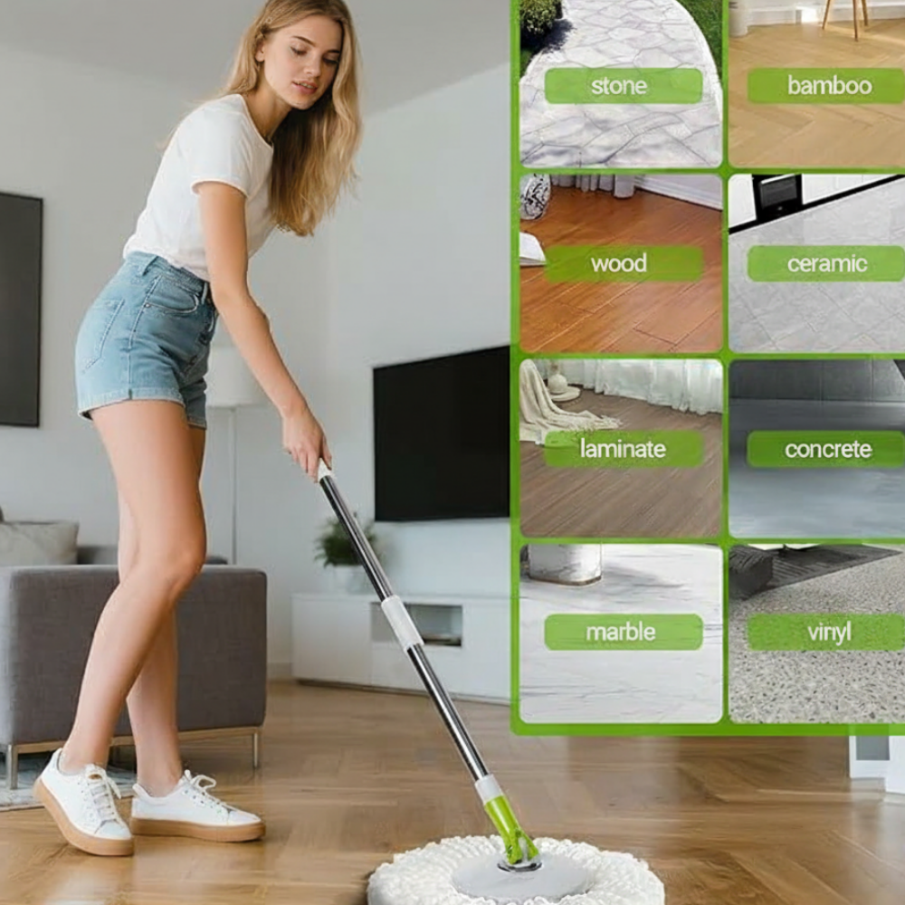 - Cuidado de superficies: El trapero con escurridor de microfibra es suave y no raya el piso, siendo ideal para cualquier tipo de superficie.