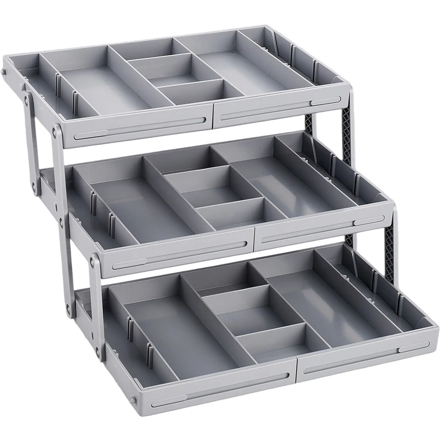 Organizador de cajón expandible de 3 niveles, almacenamiento extragrande, organizador inteligente plegable para joyas y maquillaje